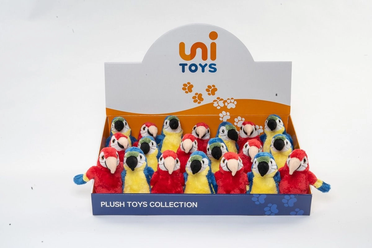 Questo pappagallo ara di peluche farà felici bambini e adulti amanti degli animali. È piacevolmente morbido al tatto, sicuro per i più piccoli e prodotto nel rispetto della natura. La dimensione compatta di 14 cm è perfetta per il gioco quotidiano e per le coccole.
