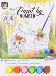 Divertente colorazione secondo i numeri. La confezione include 2 immagini, un set di 6 colori e un pennello. Dimensioni della confezione ca. 22,5 x 31 x 2 cm. Età 5+
