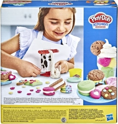 Con Play-Doh Creazioni da Cucina – Latte Bar, i bambini possono creare latte e biscotti dall'aspetto realistico grazie a una varietà di strumenti e colori di plastilina. Il set include: