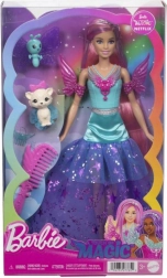 La bambola BARBIE Malibu Roberts porta avventure fiabesche ispirate alla serie Un Tocco di Magia. Brilla con un abito a strati dalla gonna in tulle scintillante cosparsa di stelle, delicati accenti ad ali allo scollo e polsini lucenti che completano il suo magico look da fata.