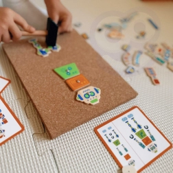 Le carte con 10 schemi aiutano a iniziare, ma il vero divertimento arriva con la creazione libera. I bambini compongono i propri robot e allenano immaginazione e pianificazione.