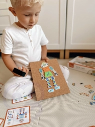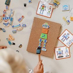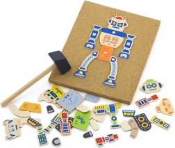 Scoprite un gioco divertente ed educativo per piccoli costruttori: la bacheca da chiodare in legno VIGA a tema robot. Il set include 45 pezzi in legno colorati, una tavoletta in sughero, un martelletto in legno, chiodini e carte modello. I bambini sviluppano motricità fine, pensiero logico, concentrazione e creatività fissando le forme sulla tavoletta seguendo la fantasia o i modelli.