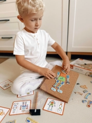 Incluse le carte istruzione con 10 proposte di robot, che aiutano a riconoscere le forme, migliorare la coordinazione occhio–mano e la pazienza. I bambini possono creare seguendo i modelli o in totale libertà, favorendo il pensiero creativo e l’autonomia.