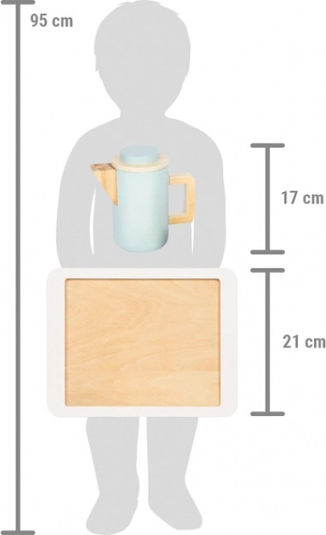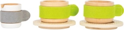 Scoprite la gioia di preparare tè e caffè con il nostro set da gioco. Questo set in legno finemente realizzato offre molti dettagli che stimolano la fantasia. La confezione include due tazzine con piattini, due cucchiaini, una zuccheriera, una lattiera e una grande caffettiera o teiera con coperchi removibili che rendono il gioco più realistico.