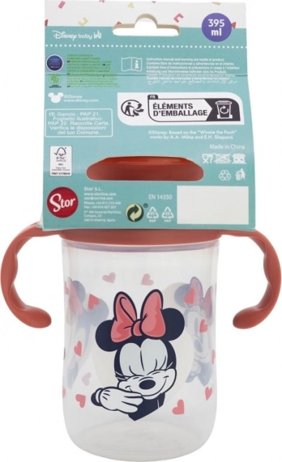 La tazza di allenamento ha un design pratico che consente ai bambini di bere semplicemente premendo le labbra, indipendentemente dalla posizione della tazza. Grazie alla maniglia ergonomica, è facile da tenere anche per le mani più piccole. Il design giocoso con il personaggio di Minnie Mouse aggiunge un elemento divertente al bere quotidiano e garantisce un'esperienza sicura senza BPA per il tuo bambino.
