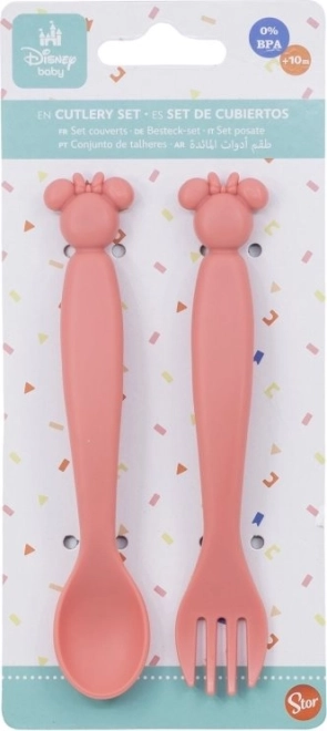 Set di due posate in plastica per bambini con finale a forma di Minnie.