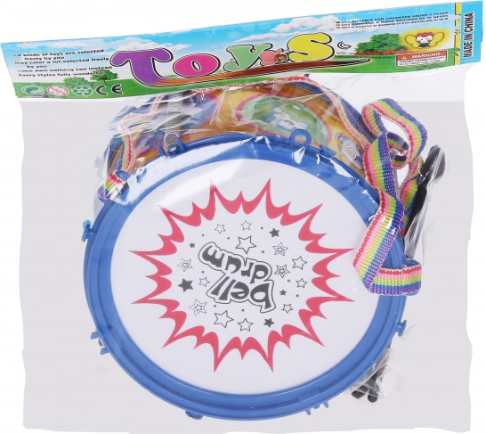 Tamburo giocattolo in plastica per bambini con tracolla e bacchette 16 × 9 cm