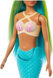 La bambola Barbie sirena con corpetto ispirato alle conchiglie e capelli colorati è perfetta per avventure sottomarine.