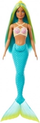 Scopri la bellezza del mondo sottomarino giocando con questa collezione unica di bambole sirene Barbie! Questa particolare bambola ha un corpetto ispirato alle conchiglie e una coda turchese con una pinna decorata con effetto ombre.
