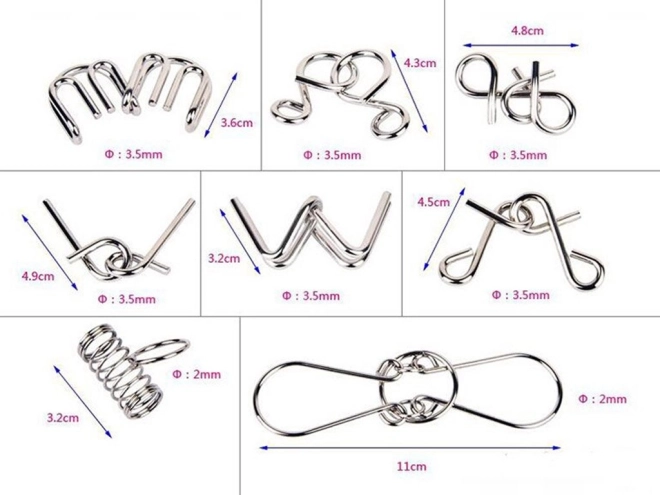 Questo set universale offre un assortimento di difficoltà vario, così ognuno troverà la propria sfida – principianti e avanzati. I rompicapi sono realizzati in metallo di qualità, per cui non si deformano e resistono a montaggi e smontaggi ripetuti.