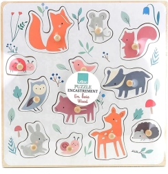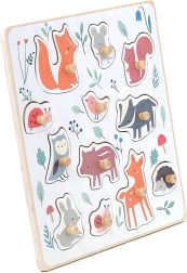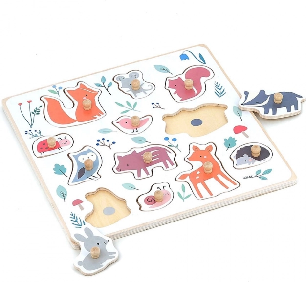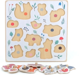 Questo puzzle in legno di alta qualità a tema bosco è nato in collaborazione con l’illustratrice Sarah Betz e porta ai bambini la gioia della scoperta. I puntini colorati sulla base suggeriscono delicatamente dove va ogni pezzo, favorendo la concentrazione e il pensiero logico. Grazie ai robusti pomelli in legno, i bambini esercitano la corretta presa e sviluppano la motricità fine.
