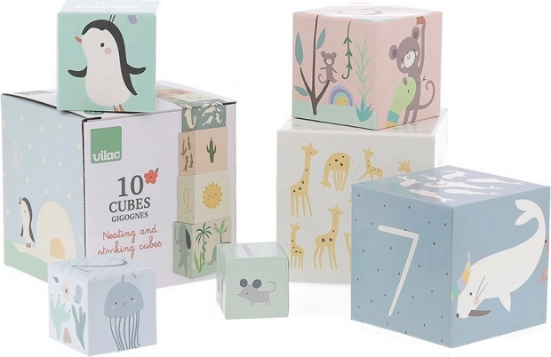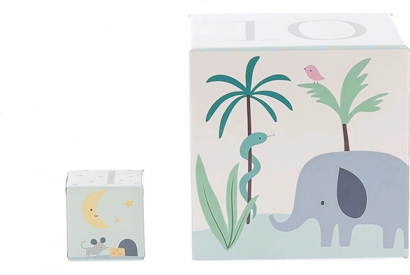 Questo primo set di cubi si adatta al ritmo di crescita del vostro bambino: dal semplice gioco di manipolazione alla costruzione della torre fino all’apprendimento dei numeri da 1 a 10. Ogni cubo è ornato da delicate illustrazioni di animali da tutto il mondo e da cifre ben visibili che guidano naturalmente alla scoperta e alla denominazione.