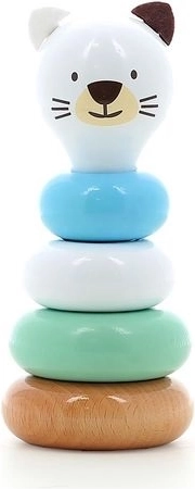Questa torre impilabile di design VILAC, ispirata alla gattina Mariette, è un perfetto primo gioco educativo. Gli anelli in legno dai colori delicati si infilano sull’astina, permettendo al bambino di allenare in modo naturale i movimenti fini e la concentrazione. Grazie alla lavorazione resistente, il giocattolo è sicuro e stabile.