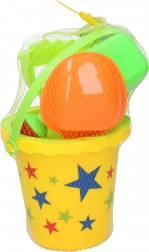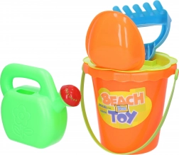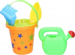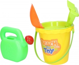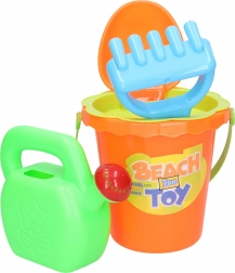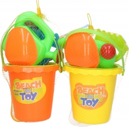 Pratico set da sabbia per bambini da 15 cm che include tutto ciò di cui i piccoli costruttori hanno bisogno: secchiello, setaccio, annaffiatoio, rastrello e paletta. Disponibile in 2 varianti di colore – giallo e arancione. Perfetto per parco giochi, spiaggia e giardino.