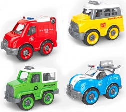 Divertente ed educativo auto avvitabile per bambini, che offre la possibilità di sviluppare la motricità fine. Disponibile in 4 diverse varianti - vigili del fuoco, polizia, autobus e pulizia.