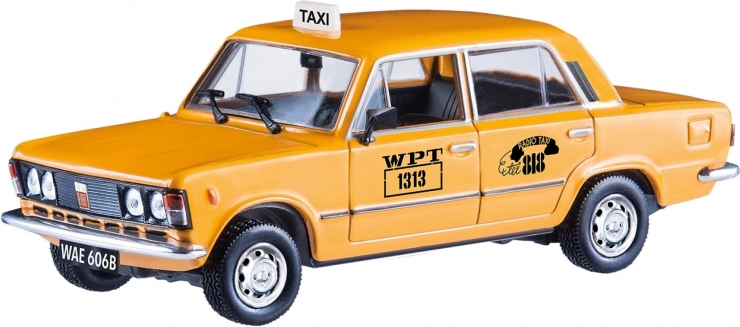 L’iconico taxi Fiat 125p della serie Zmiennicy ora in un dettagliato modello da collezione 1:43. Struttura in metallo die‑cast con dettagli in plastica, iconica tonalità gialla “bahama yellow” e riproduzione con licenza FSO che entusiasmerà gli appassionati di cinema e gli amanti delle auto classiche.