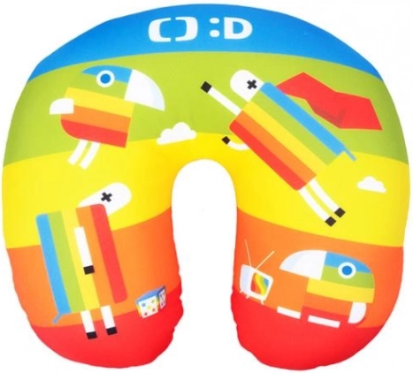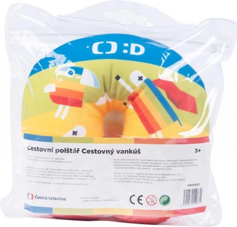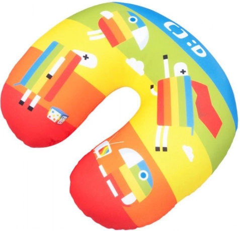Colorato cuscino da viaggio per bambini a forma di U con licenza CT Déčko che offre sostegno ergonomico al collo e comfort in viaggio. Realizzato in morbido plush vellutato, ideale per auto, autobus e aereo.