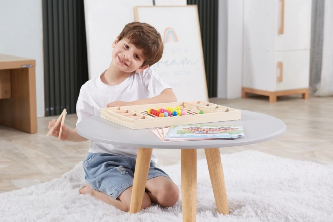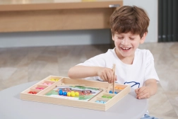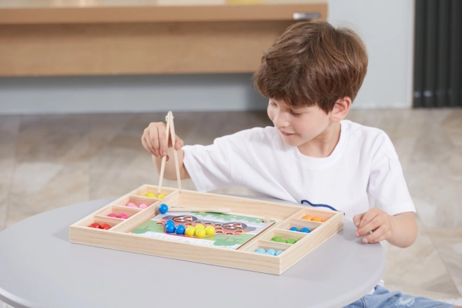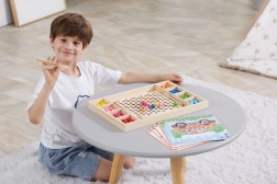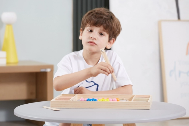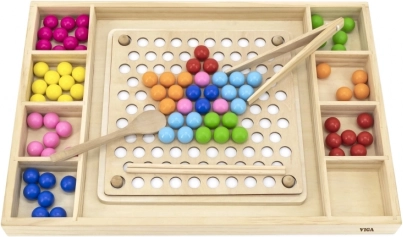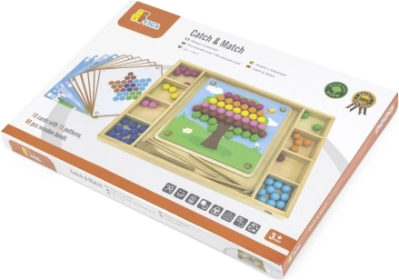 Gioco in legno "Prendi e Ordina" del marchio Viga per bambini dai 3 anni in sù, che non solo sviluppa la loro capacità di riconoscere colori e modelli, ma anche la coordinazione occhio-mano e la concentrazione.