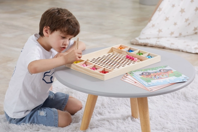 Il gioco educativo in legno "Prendi e Ordina" consente ai bambini di provare diversi modelli e colori secondo i fogli allegati o la loro immaginazione. Con questo gioco, i bambini hanno la possibilità di fissare carta sul vassoio di legno e, utilizzando bastoncini, cucchiaio o clip, inserire palle colorate nei fori sulla tavola. Alla fine, i bambini possono creare belle immagini.