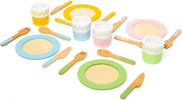 Scopri la gioia del mondo della cucina per bambini con questo eccezionale set da servizio in legno. Realizzato in legno di alta qualità, questo set include tutte le stoviglie e le posate necessarie adattate per le manine dei tuoi bambini.