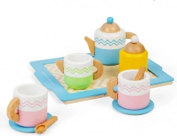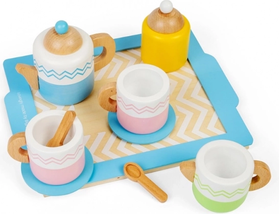 Questo ricco set da tè offre tutto il necessario per i piccoli anfitrioni: dalle tazze alla teiera fino al vassoio. La costruzione in legno di qualità, le finiture lisce e i delicati colori pastello invitano al gioco che sviluppa immaginazione, comunicazione e le basi del galateo a tavola.