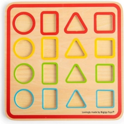 Il set include una solida tavola di base e 16 pezzi in legno di forme e colori diversi. Le dimensioni compatte della tavola, 25 × 25 × 0,9 cm, sono adatte al tavolo dei bambini e alle uscite, e si ripone facilmente.