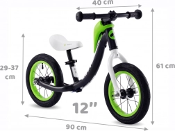 Grazie alle ruote gonfiabili da 12", la bici scorre in modo fluido anche su superfici meno regolari. La regolazione rapida della sella (circa 31–38 cm) permette di adattare l’altezza alla crescita del bambino. La pratica tracolla di trasporto è comoda durante le gite e a fine gioco.