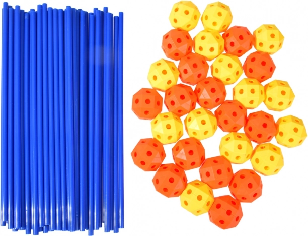 Questo set di costruzione universale con lunghe aste blu e connettori arancioni e gialli consente ai bambini di creare strutture tridimensionali durevoli. Tubicini rigidi che non si piegano e connettori poligonali stabili mantengono la forma anche per costruzioni più grandi. È incluso anche un quaderno di idee per partire subito.
