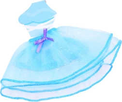 La confezione include un tutù blu extra scintillante con nastro viola per un cambio outfit rapidissimo.