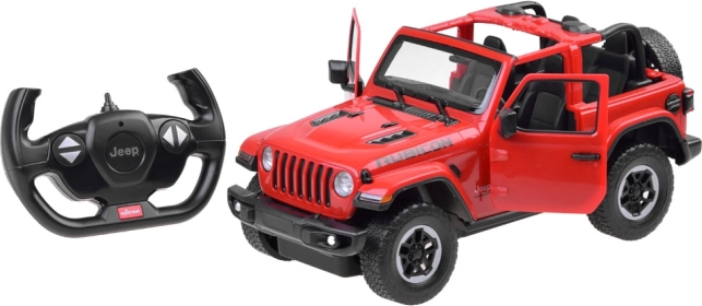 Jeep Wrangler Rubicon del marchio Rastar è una grande auto RC con licenza in scala 1:14, che offre tanto divertimento a ogni appassionato di quattro ruote. Questo modello è accuratamente realizzato, ha porte apribili e grandi ruote in gomma morbida che garantiscono un'ottima aderenza.