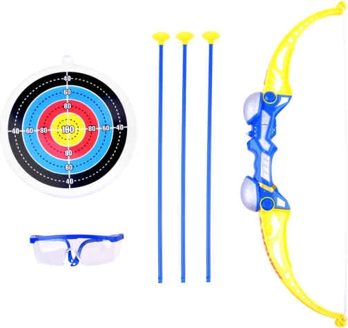 Le frecce sono dotate di ventose in gomma, quindi giocare secondo le regole sarà senza rischi di infortuni. L'arco è dotato di un piccolo LED che emette una luce colorata lampeggiante, aumentando l'attrattiva del gioco, soprattutto in una stanza buia o di notte. <\/span>