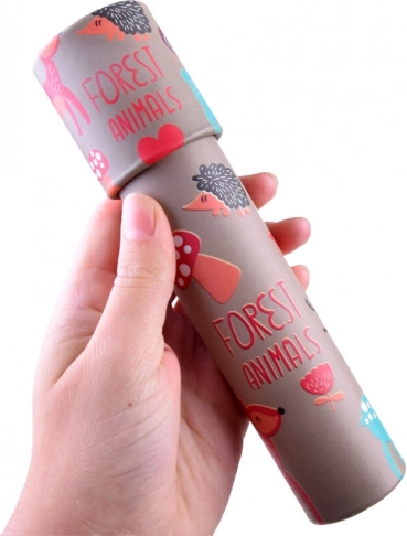 La struttura leggera e resistente in cartone, con allegri motivi di animali del bosco, garantisce una presa confortevole e un gioco sicuro. Il caleidoscopio è perfetto per lo sviluppo della creatività, della percezione sensoriale e della pazienza.
