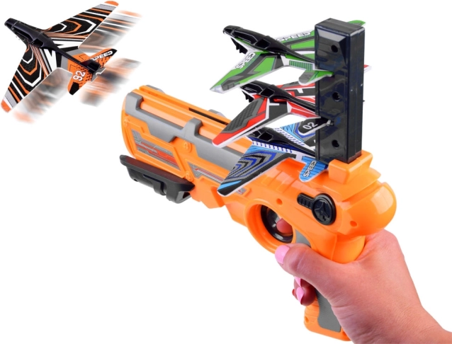 La grande pistola lanciatrice di aerei è la nostra offerta più recente. Il dispositivo di lancio ha un caricatore in cui è possibile caricare tre aerei. Per sparare ogni volta un aereo, è necessario ricaricare il caricatore della pistola. Dopo ogni lancio, il caricatore si abbassa, quindi è possibile sparare fino a tre aerei in un turno. L'arma è completamente realizzata in plastica leggera e gli aerei sono in schiuma EPP. Grazie alla loro leggerezza, l'aereo si solleva e vola per diversi metri. Ogni fan delle competizioni di tiro che possiede un tale dispositivo di lancio può allenarsi per i voli più lunghi e poi organizzare gare con gli amici. <\/span><\/p> Il set include:<\/strong><\/span> Giocattolo interessante che catturerà completamente te e i tuoi amici. Ricorda le regole di sicurezza durante il gioco. Gioca solo sotto la supervisione degli adulti.<\/span>