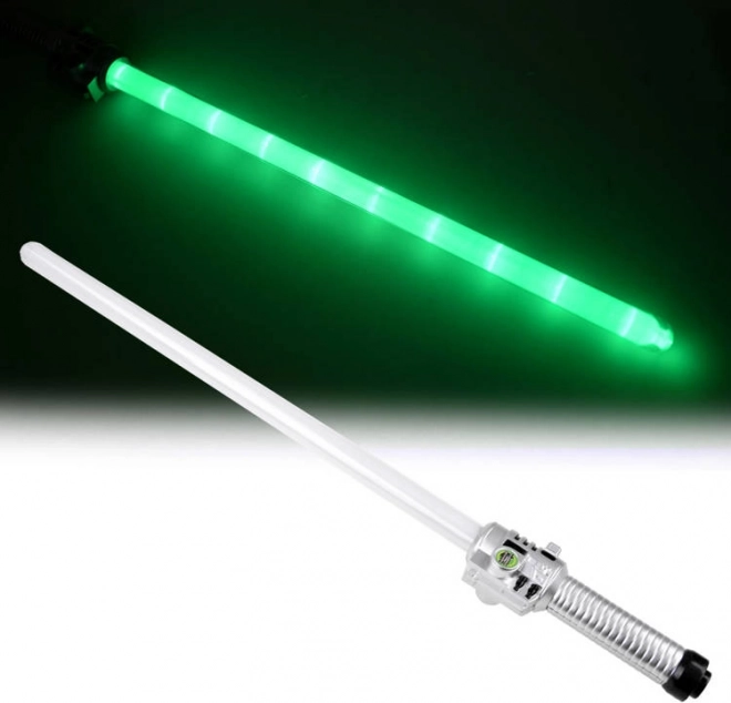 Potenti LED illuminano la spada con un verde intenso, perfetto per ogni scena d’azione.