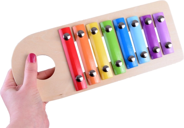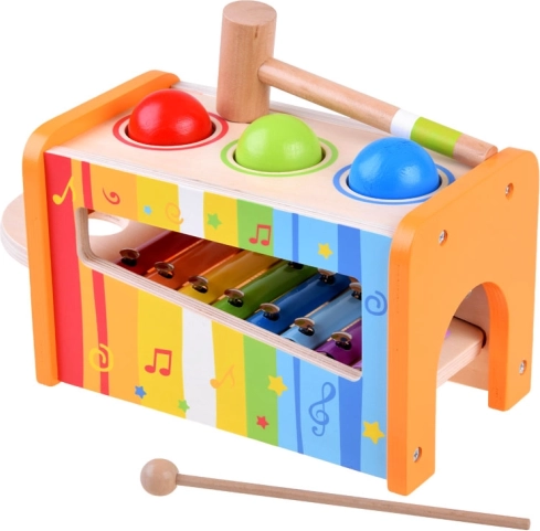 Lo xilofono in legno e il martelletto supportano non solo le abilità musicali, ma anche le capacità motorie dei bambini.