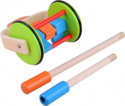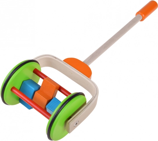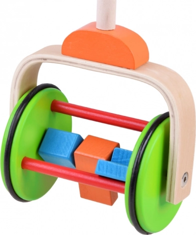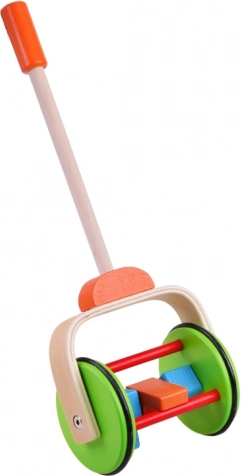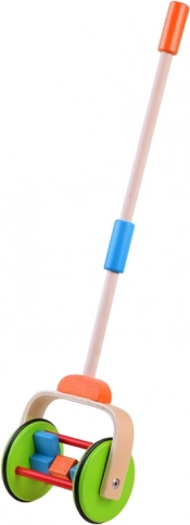 Il giocattolo in legno colorato da spingere è progettato per supportare i bambini nei loro primi passi. Ha un manico regolabile all'altezza del bambino. Le ruote sono rivestite con una fascia di gomma, garantendo un movimento fluido e protezione del pavimento.