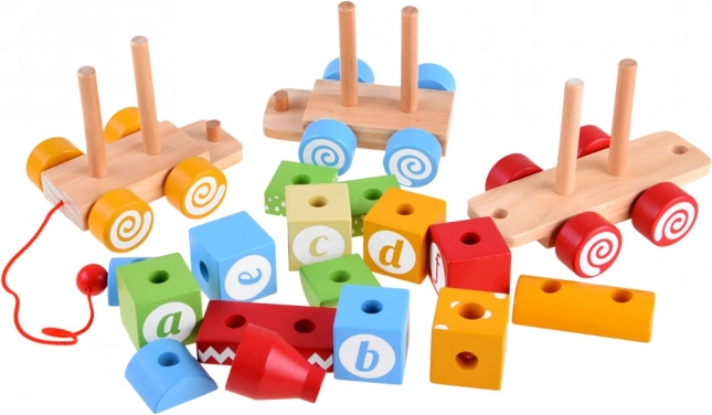 Questo trenino in legno aiuta a sviluppare abilità manuali e pensiero logico.