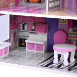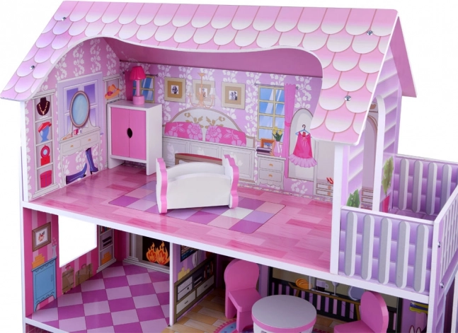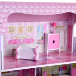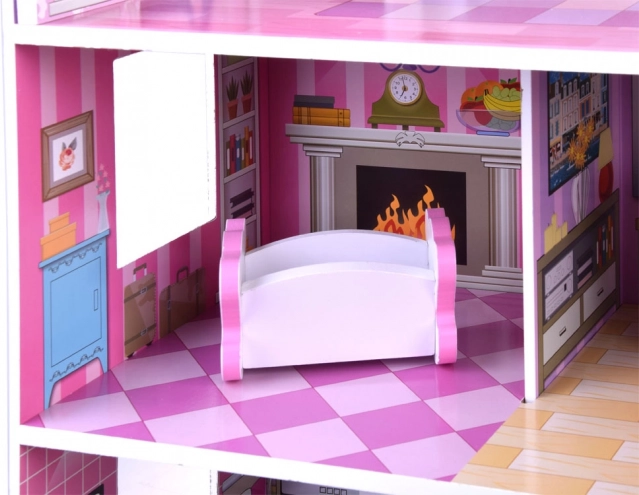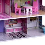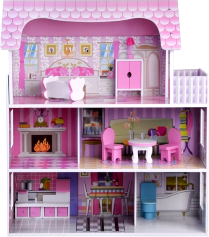 La casetta per bambole in legno rosa‑lilla affascina con illustrazioni dettagliate e un'architettura aperta per un facile accesso a ogni stanza. I tre piani offrono cinque aree completamente attrezzate e una terrazza, invitando a lunghe ore di gioco immaginativo. Grazie alla struttura in legno stabile e alle proporzioni studiate, è il centro ideale della cameretta.