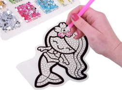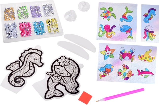 Crea adesivi scintillanti e due immagini sospese con gli amici del mare. Le creazioni finite si posano facilmente sui supporti oppure si appendono con ventose con ganci.