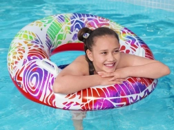 Con un diametro di 91 cm, è confortevole per bambini più grandi e adolescenti. La valvola di sicurezza permette un facile gonfiaggio e mantiene l’aria all’interno. La struttura leggera e compatta lo rende l’accessorio ideale per vacanze, piscina e lago.