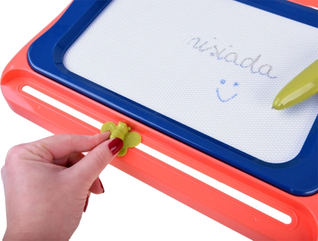 La cancellazione è immediata: basta far scorrere il cursore a forma di farfalla da un lato all’altro e la superficie torna pulita. Il design compatto, leggero e portatile rende la lavagnetta una compagna perfetta per i viaggi, in auto e in vacanza.