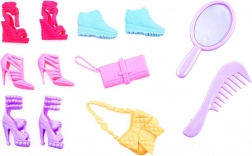 Diversi tipi di scarpe, borsette, specchietto e pettine permettono di perfezionare ogni look in ogni dettaglio e valorizzare lo stile personale della bambola.