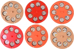 Il proiettore offre due modalità: come proiettore per visualizzare immagini oppure come lampada. Basta far scorrere l'interruttore per cambiare funzione. Il set include 48 immagini diverse su 6 dischi circolari. Le immagini sono suddivise in categorie come veicoli, verdura, frutta, animali, sport e abbigliamento, garantendo ore di divertimento. I motivi proiettati possono essere ricalcati sulla superficie cancellabile a secco o su normale carta.