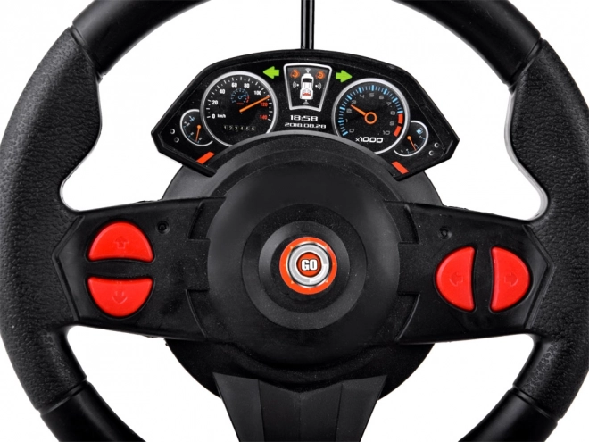 Questo modello futuristico con assetto basso e spoiler posteriore offre ore di divertimento a bambini e adulti. Il controller a forma di volante si impugna perfettamente e, insieme ai pedali, simula fedelmente la guida. I fari anteriori si accendono durante la marcia in avanti, aggiungendo un effetto accattivante.