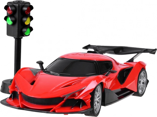 Nella confezione è incluso anche un semaforo, che arricchisce il gioco con elementi stradali e insegna ai bambini le basi del codice della strada. L’auto è realizzata in plastica resistente, ha la trazione sull’asse posteriore e la convergenza regolabile delle ruote anteriori per una guida più stabile.