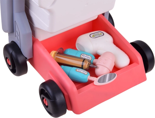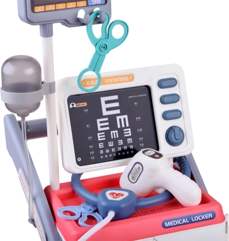 Questo carrello medico è interamente realizzato in plastica di alta qualità ed è progettato per un gioco colorato e divertente. Tutti gli strumenti sono fedeli riproduzioni di veri strumenti medici con forme amichevoli e colori vivaci.