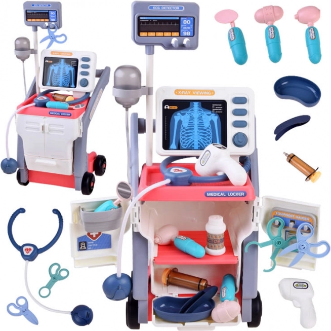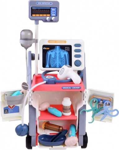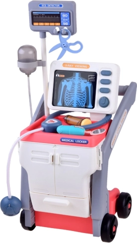 Il carrello include un monitor con effetti sonori che simula il monitoraggio delle funzioni vitali del paziente. Lo stetoscopio emette suoni di battiti cardiaci.