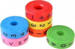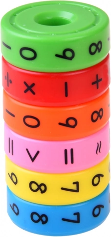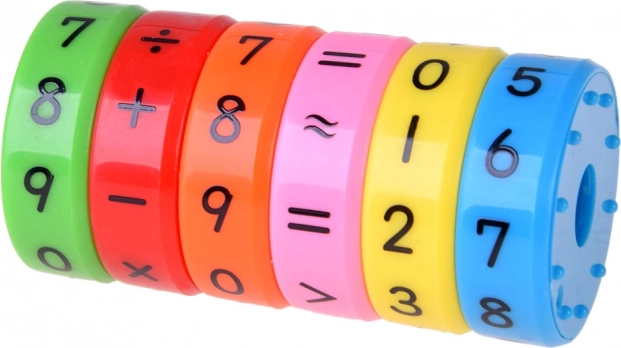 Sei anelli magnetici colorati permettono ai bambini di creare diverse operazioni matematiche.
