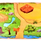 La stuoia da gioco include diversi terreni come erba, sentiero e laghetto, che arricchiscono l'esperienza di gioco dei bambini.