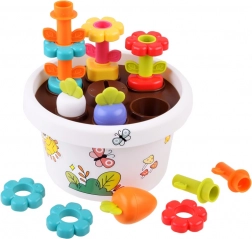 Il pensiero creativo è stimolato attraverso la decorazione della fioriera e la creazione di strutture floreali con l'aiuto di carote magnetiche e altri pezzi colorati.